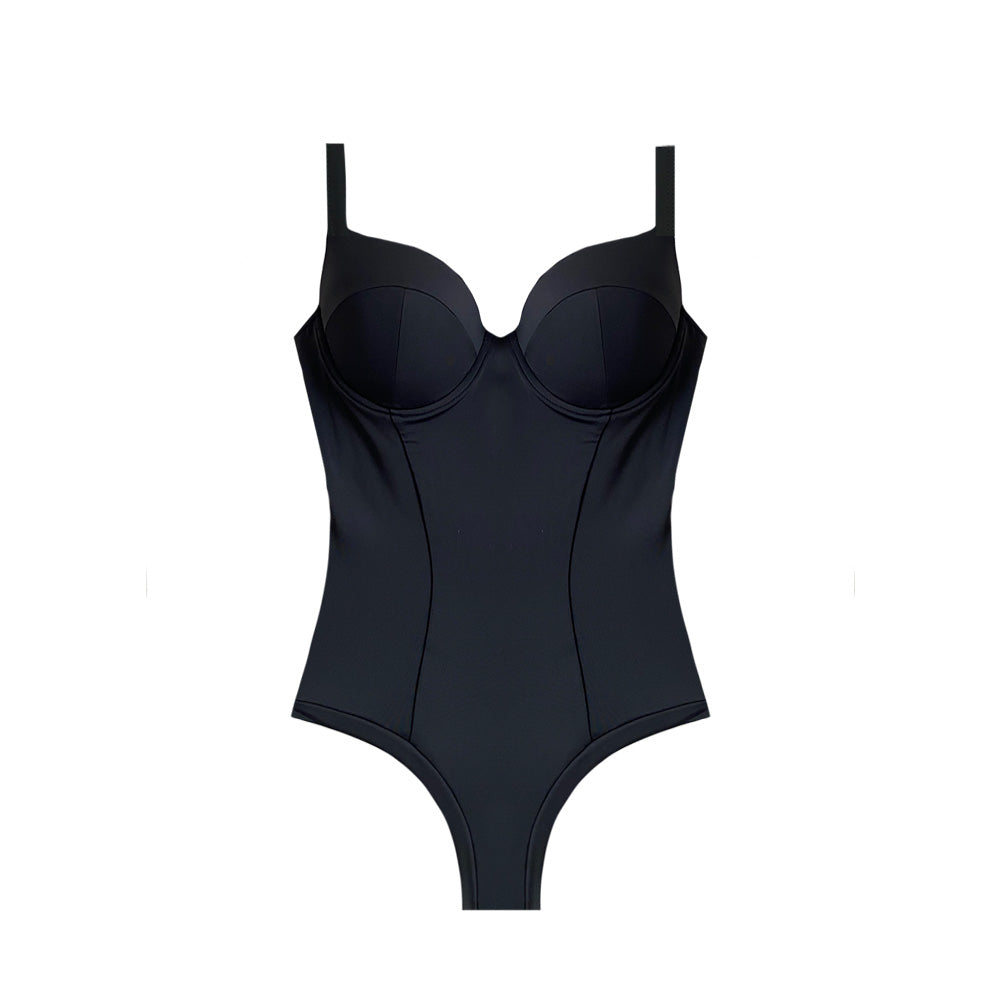 Este entero es una maravilla! Esta completamente confeccionado con doble tela por lo que lo hace mas firme, tiene barbas en la parte del sostén y copas, que realza, horma y hace que todo esté siempre perfecto en su lugar! la parte de las piernas no trae elásticos, por lo que no marca nada, asi que siempre decimos que para elegir la talla es siempre mejor regirse por la talla del sostén mas que la del pantalón. Y por ultimo, el corte de las telas de la parte delantera hace una figura más estilizada y tiene una espalda tipo corse soñada! No sé si se le puede pedir mas a un traje de baño 😍😍😍