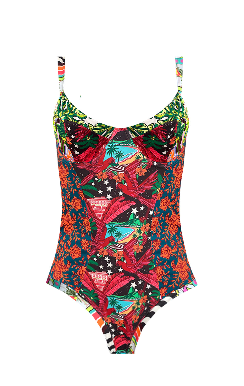 Porque es comodísimo, es completamente confeccionado con doble tela por lo que lo hace mas firme, tiene barbas en la parte del sostén que hace que todo quede en su lugar perfectamente (especialmente si hay que correr detrás de alguna criatura en la playa o en la piscina jejeje), no trae copas y hace una caída muy bonita, la parte de las piernas no trae elásticos, por lo que no marca nada, asi que siempre decimos que para elegir la talla es siempre mejor regirse por la talla del sostén mas que la del pantalón.